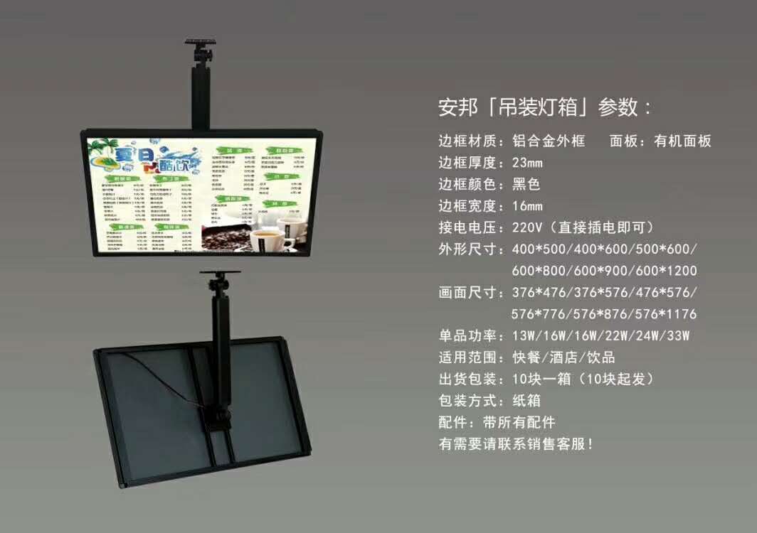 產品用途超薄節(jié)能燈箱主要適用范圍:廣告媒體、墻面裝飾宣傳、室內外指示牌……